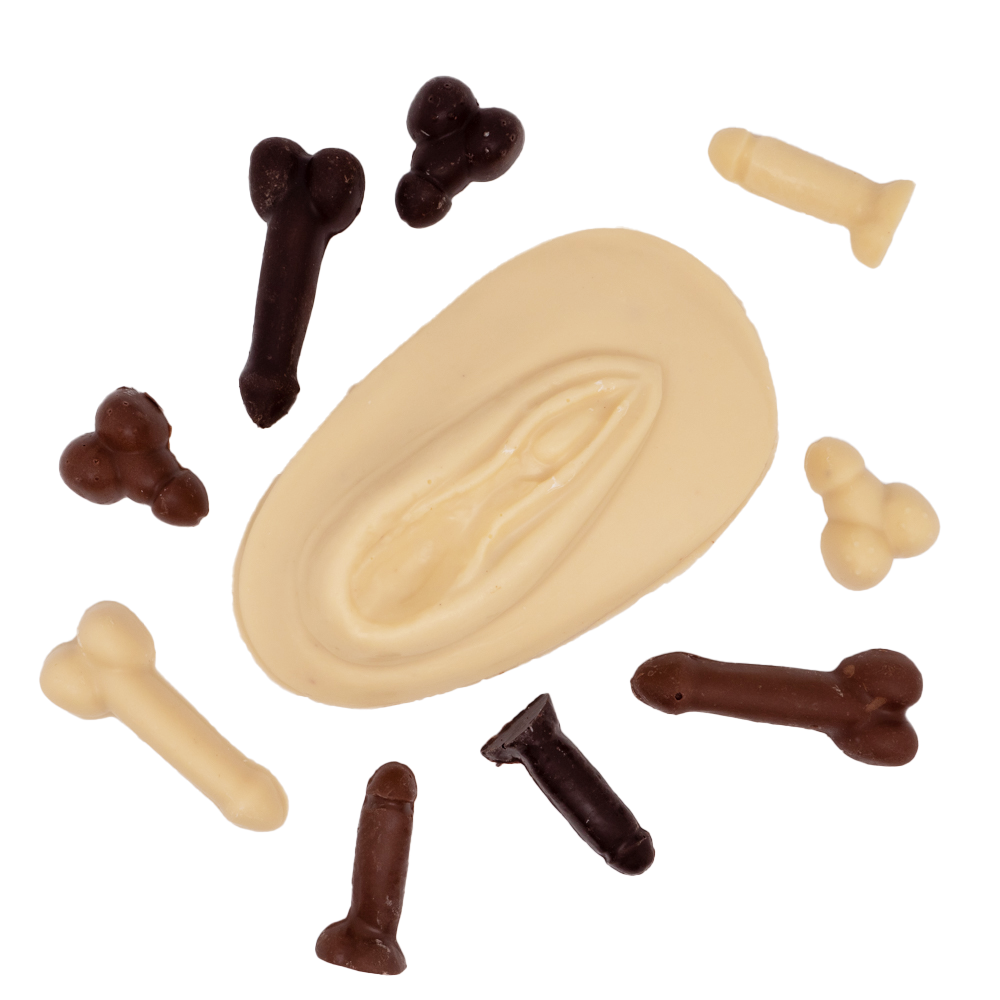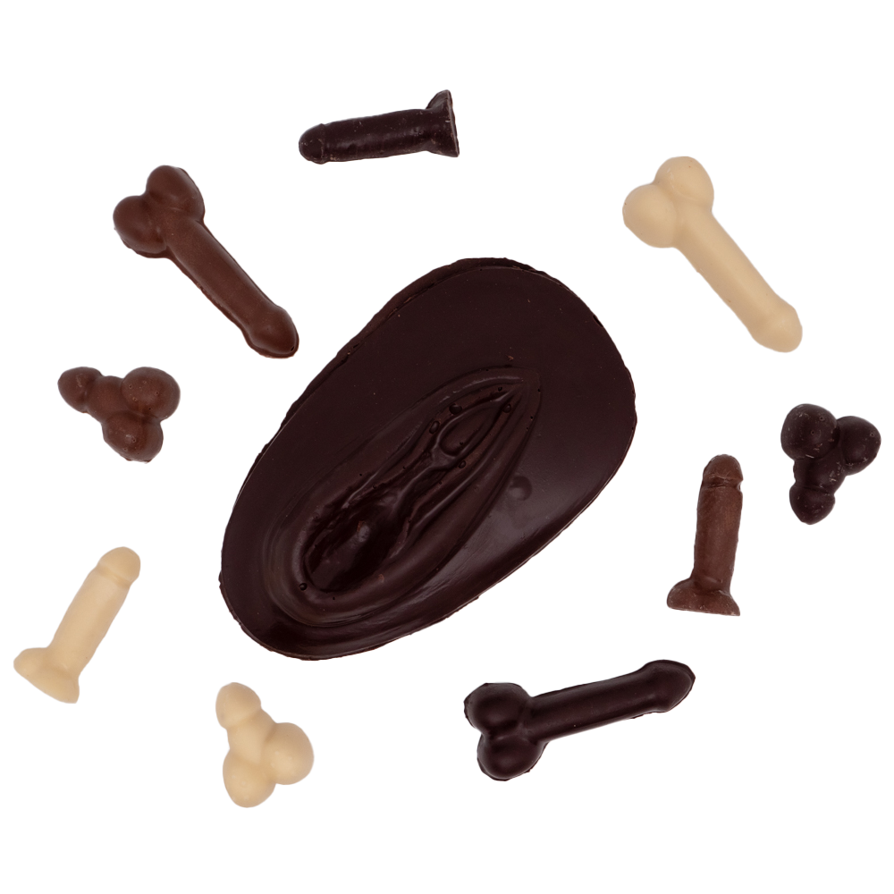 Ce coffret généreux de 230g est le florilège ultime de nos créations les plus audacieuses. Au centre, trône une pièce maîtresse, une sculpture sensuelle qui donne le ton. Autour d’elle, une flotte de mini-créations masculines et féminines aux trois chocolats (noir, lait et blanc) vous invite à explorer toutes les facettes de notre univers. C’est une expérience complète, un jeu de formes, de textures et de saveurs qui raconte toute l’histoire de Chocolat de Minuit.